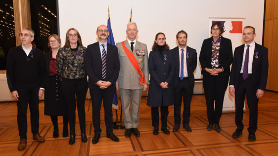le Général Francois Lecointre, Grand Chancelier de la Légion d’honneur, nous a fait l’honneur de sa présence. Près de soixante-dix personnes, essentiellement nommées ou promues, en 2024 et 2025, ont ainsi reçu leur insigne des mains du général Lecointre, du préfet, de la directrice académique ou de la présidente d'honneur de l'AMOPA nationale pour les trois grades.