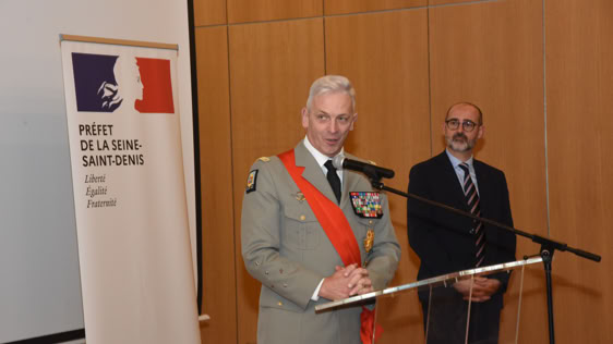 Je suis particulièrement honoré Mon Général de votre présence, qui témoigne de votre attachement à la Seine-Saint-Denis, et des liens étroits qui unissent la Grande Chancellerie tout à la fois avec l’Ordre des Palmes Académiques et avec l’AMOPA.