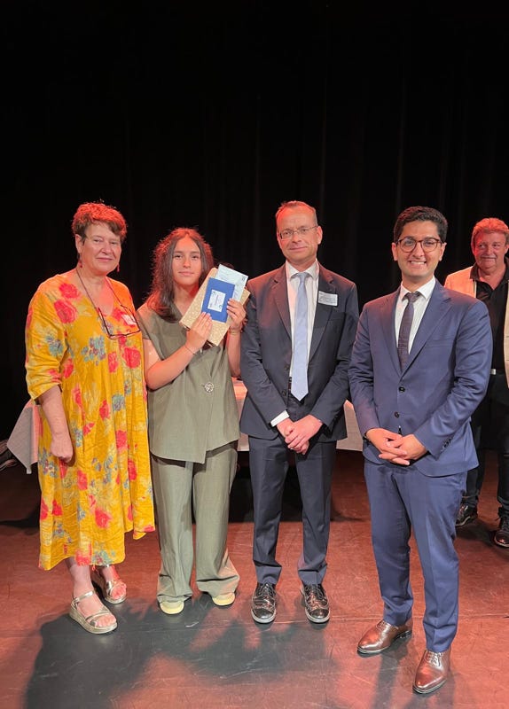 Remise du prix international de poésie Arthur Rimbaud (selon prix Jeunesse), lors d’un dîner organisé au Sénat à notre Lauréate 2024, Ambre Lambert-Tolédano.