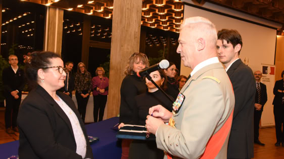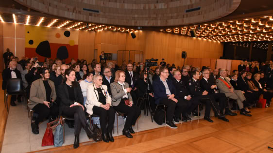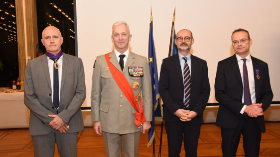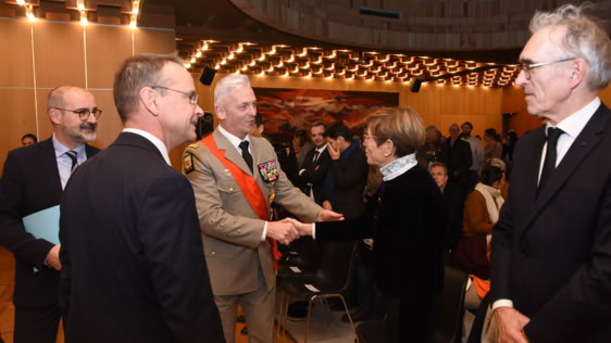 le Général Francois Lecointre, Grand Chancelier de la Légion d’honneur, nous a fait l’honneur de sa présence. Près de soixante-dix personnes, essentiellement nommées ou promues, en 2024 et 2025, ont ainsi reçu leur insigne des mains du général Lecointre, du préfet, de la directrice académique ou de la présidente d'honneur de l'AMOPA nationale pour les trois grades.