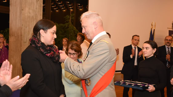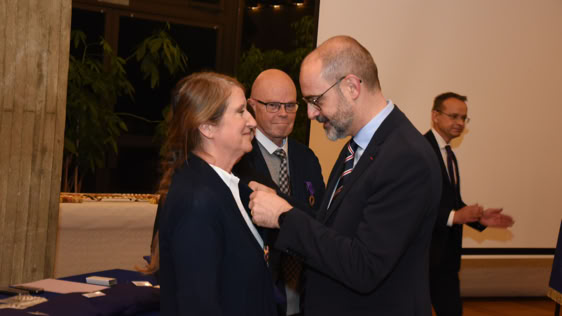 Les Palmes académiques, dont nous venons de fêter le 70ème anniversaire de la création - ou plutôt de la recréation, puisque leur origine remonte à l’empereur Napoléon -, les Palmes académiques, donc récompensent, les personnes, enseignantes ou non, s’étant particulièrement engagées en faveur de l’éducation. Elles témoignent ainsi de la reconnaissance officielle de la République pour leur engagement professionnel.