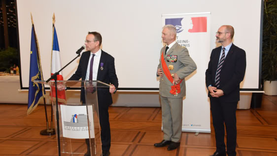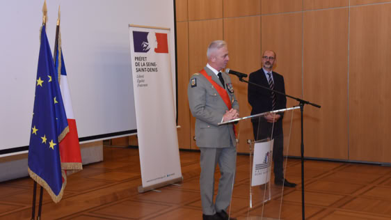 Je suis particulièrement honoré Mon Général de votre présence, qui témoigne de votre attachement à la Seine-Saint-Denis, et des liens étroits qui unissent la Grande Chancellerie tout à la fois avec l’Ordre des Palmes Académiques et avec l’AMOPA.
